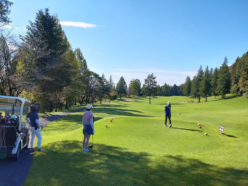 この日は最高気温26度で秋晴れの心地よい風が吹くゴルフ日和となりました。しかしながらコースはタイトな山岳でアップダウンが激しく、グリーンは砲台で傾斜もきつく、素ダボや3パット4パットが続出?!
