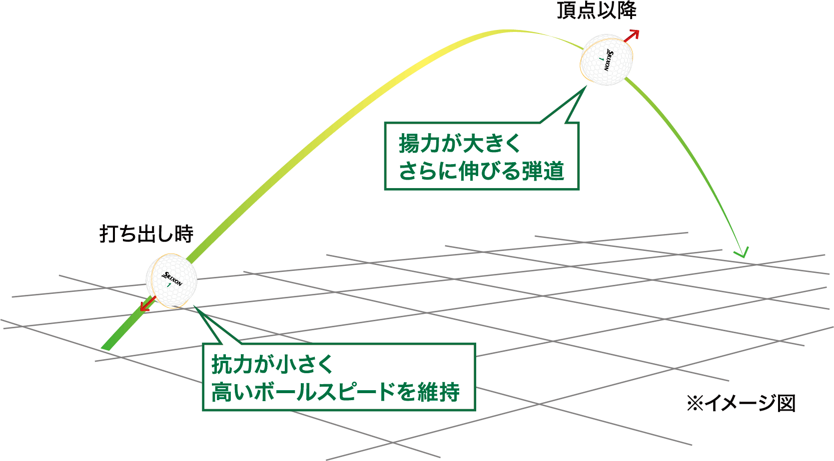 「強弾道 338 スピードディンプル」がショット後半でボールがひと伸びする弾道を実現。