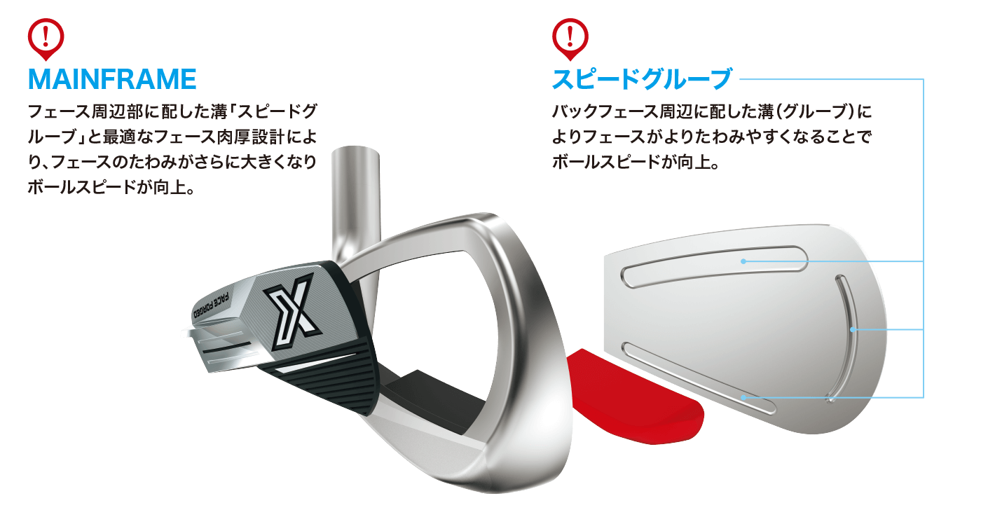 薄肉鍛造フェースと「MAIN FRAME」構造に加え、