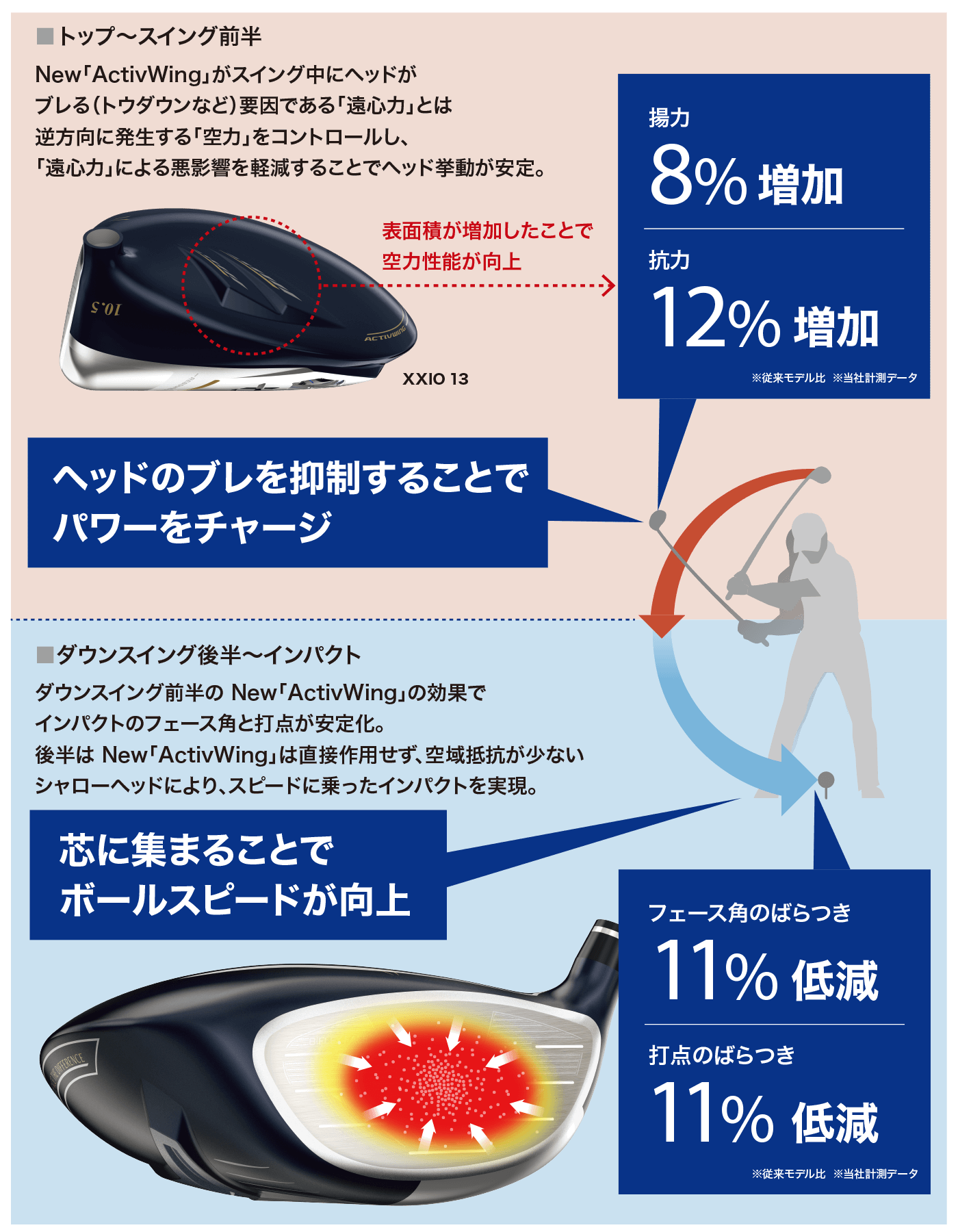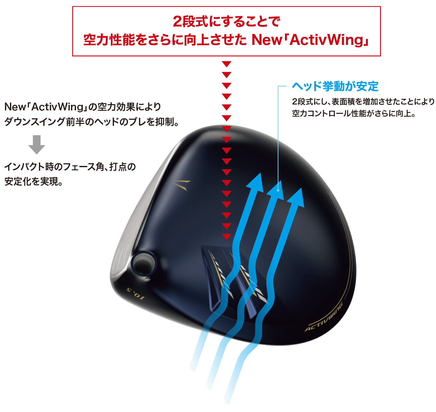 ダウンスイング前半の空力をコントロールすることでヘッド挙動を安定させるテクノロジーがパワーアップ。