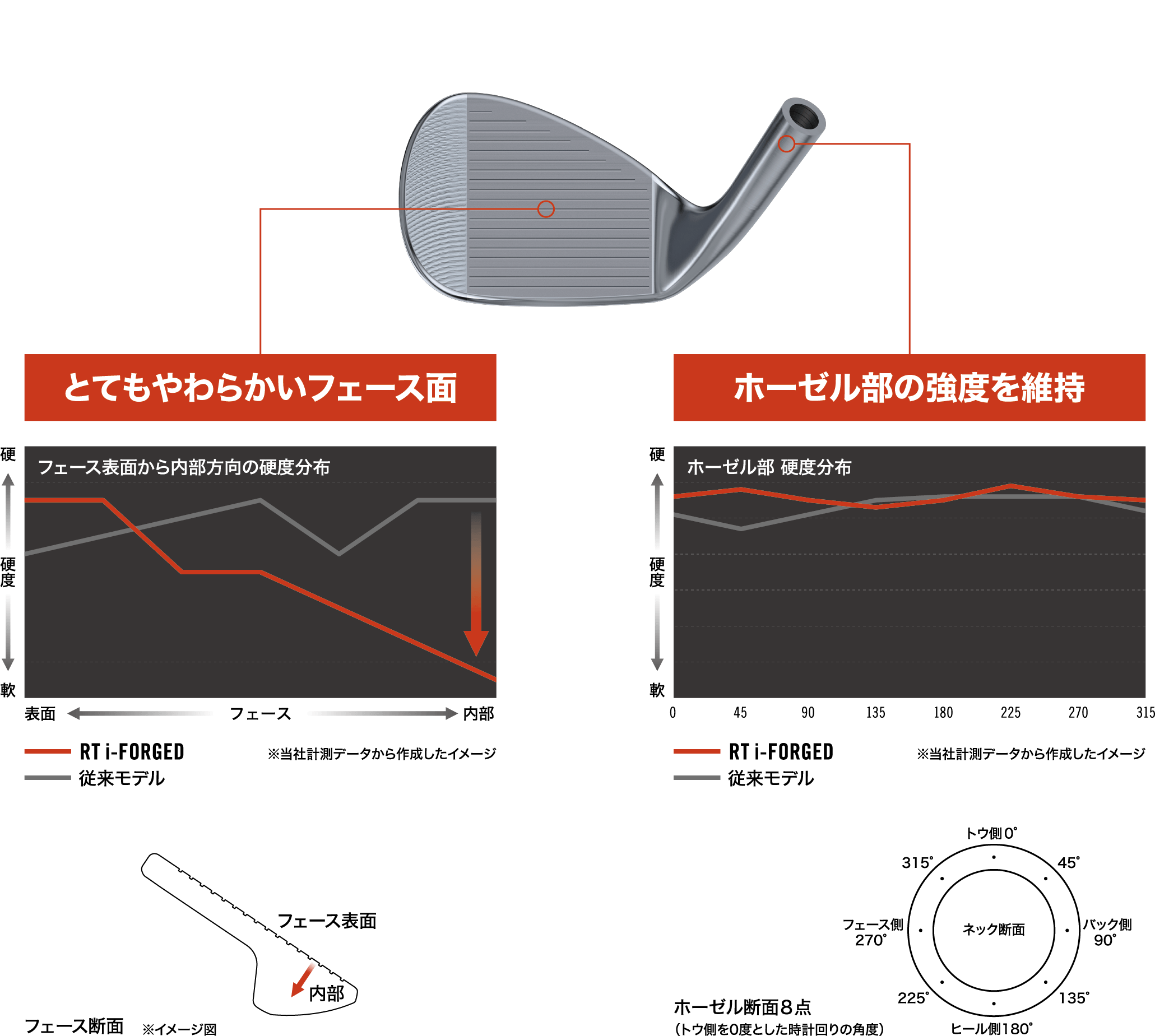 「コンデンス鍛造」により、フェース面はS15Cのやわらかさを活かし、