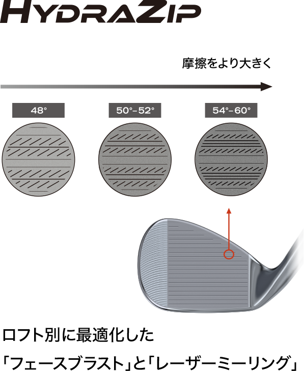 あらゆる状況下でスピン性能を向上させる 「HydraZip」フェースと