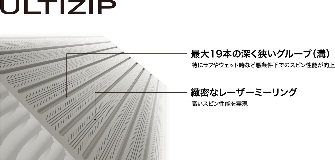 強烈なスピンを生み出す「ULTIZIP」グルーブにより、優れたスピンコントロール性能を発揮。