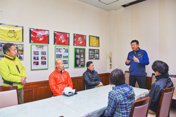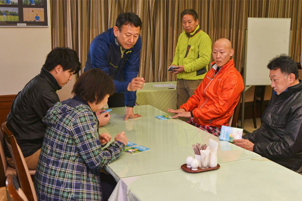 笑顔あふれる自己紹介の後は、小冊子が配られ、ルールとマナーについて特に気をつけたいことをインストラクターが説明しました。質問も出て、活気があります。