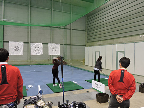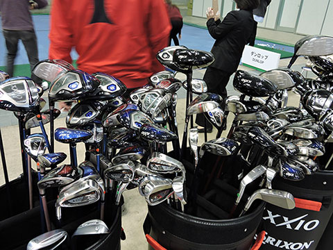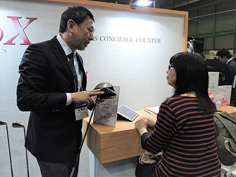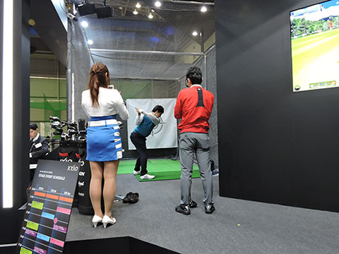 ブースの奥には、ゴルフフェア恒例の試打スペースを設置。『ゼクシオ テン』のドライバーやアイアンをはじめ、スリクソン、クリーブランドのクラブを豊富なスペックでご用意しました。各打席ではダンロップのクラブドクターがお客様のスイングやショットを見ながら、お客様にフィットするクラブ選びをアドバイス。レディースゴルファーの姿も多く見られました。