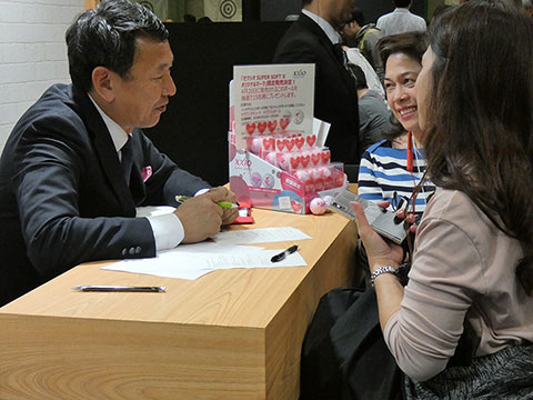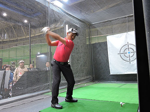 昨年12月に発売されて以来、大人気のゼクシオの10代目モデル『ゼクシオ テン』。その飛びを体感していただこうとステージ上に試打用ケージを設け、各日20数名ずつのお客様にドライバーを試打していただきました。試打するにあたっては、ダンロップのクラブドクターたちがインパクト解析・診断システム「デジタル・インパクト・ワールド」を使ってクラブフィッティングを行ない、お客様のスイングに合ったスペックをおすすめ。自分にぴったりの一本を見つけた参加者のみなさんは、「ゼクシオ テン」の“芯食い”と、その大きな飛距離に大満足の様子でした。
