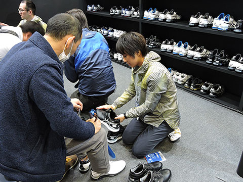 アシックスゴルフシューズのコーナーでは、ゴルフフェア恒例の3次元足形計測機による「足形計測体験」を実施しました。まず専任スタッフが、お客様の足を片方ずつ立体的に計測しデータを作成。「足長」「足高」など7つの項目を元にお客様の足の特徴を診断してカウンセリングを行ない、アシックスゴルフシューズの中から、お客様の足に合ったモデルをおすすめしました。また、同コーナーでは、メンズの最上級モデル『GEL-ACE® PRO X Boa』(TGN922)やレディスモデル『GEL-ACE® TOUR-LADY Boa』(TGN924)など、この春新発売されたプロモデルも展示しました。