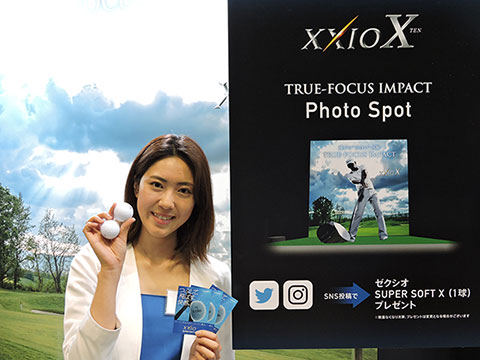 ブースの一画に設けられたのが、来場記念写真の撮影にぴったりの「ゼクシオ テン TRUE-FOCUS IMPACT フォトスポット」。来場者のみなさんは、「ゼクシオ テン」を持ち、ゴルフコースを背景に思い思いのポーズをとって撮影。撮影した写真をツイッターやインスタグラムなどのSNSに投稿してくださった方には、ソフトな打感と大きな飛距離を高い次元で両立させた「ゼクシオ SUPER SOFT X」1個をプレゼントしました。