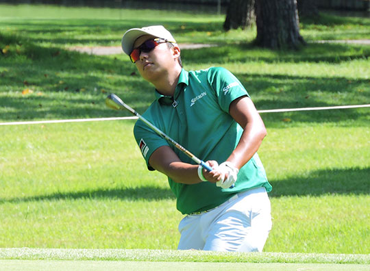 あの試合の初日、僕は前半(イン)で2オーバーと苦しいスタートだったのですが、後半はポンポンと続けてバーディが来て「31」で回ることができました。3番のパー3でグリーン奥からの長いアプローチをチップインしてバーディが獲れた時に「おっ?」と思ったし、そこからうまく流れに乗れた気がします。続く2日目は台風の影響で風が強くて、序盤に3ホール連続ボギーにしてしまいました。でも、直後にしっかりバーディを取り返すことができて、その後もいくつかバーディが獲れたことでトップに立てました。僕は風はあまり得意ではないのですが、あの日はうまく風を使うことができた感じですね。