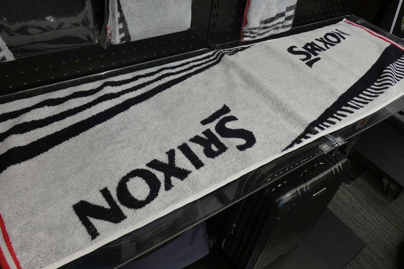 スリクソンのタオルも、ウォッシュタオル『GGF-06134』(税込660円)のほか、プロモデルのスポーツタオル『GGF-20452』(税込2,200円)、フェイスタオル『GGF-15342』(税込1,650円)、バスタオル『GGF-38114』(税込4,180円)という4つのラインアップで新発売。こちらもスリクソン Z-STARシリーズのモデルチェンジに合わせ、デザインを変更。ボールパッケージにあしらわれたV字を強調したデザインになっています。