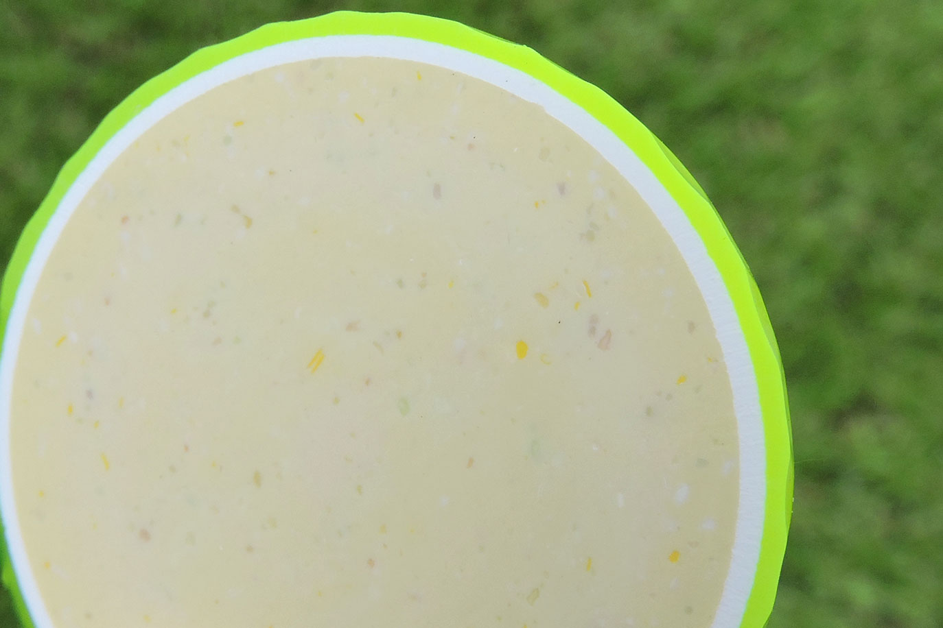 児島:冒頭でもお話ししましたが、コアと中間層だけでなく、カバーにも改良を加えました。前作のカバーでは、当社の初期のウレタンカバーのやわらかさと同等の「ソフトアイオノマー」を開発、採用しました。今回のカバーも素材自体は同じなのですが、新しい配合に変えました。アプローチでスピンがかかるという従来のメリットはそのままに、反発性能を上げるために開発した、いわば飛びに特化したソフトアイオノマーです。その結果、他社のディスタンス系ボールと比較すると断トツにやわらかく、なおかつ他社のスピン系ボールのウレタンカバーに引けを取らない硬度になっています。それにより『ハイパー RD』は打感がやわらかいですし、アプローチでしっかりスピンがかかります。