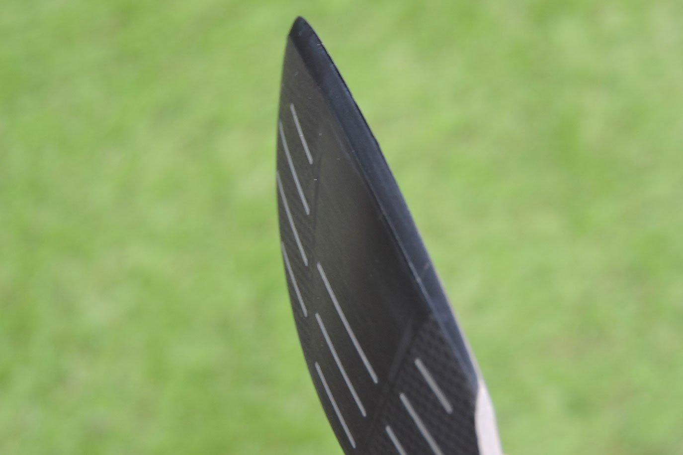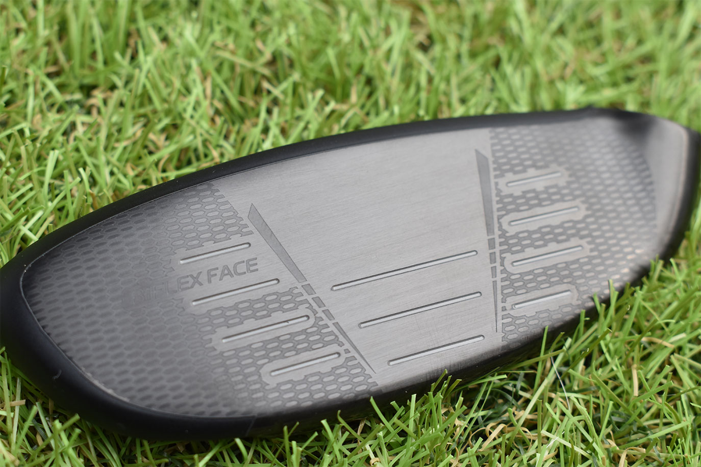 「ハイブリッドはロフトがある程度付いているので、構えやすさとスピン量のバランスも考えながらスコアラインの設計をしています。特に『14+』の場合、ダークフェースにしているので、スコアラインが見えないと難しそうに見える一方で、ハッキリしすぎても逆に構えにくいという意見が出たため、グレーに仕上げてバランスを取っています」(佐藤)
