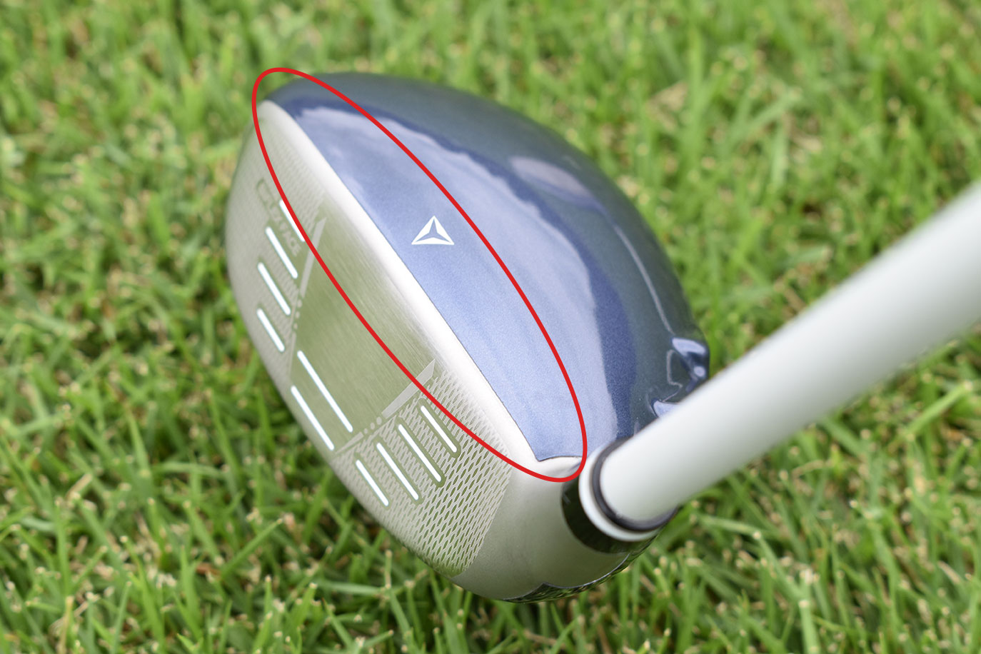 工夫の1つが、ウッドの肉厚設計。女性の小さなパワーでもボール初速が出るよう、打点がヒール側に集中するのに合わせて、その部分の肉厚をできるだけ極限まで薄くし、ヘッドがたわむようにしている。