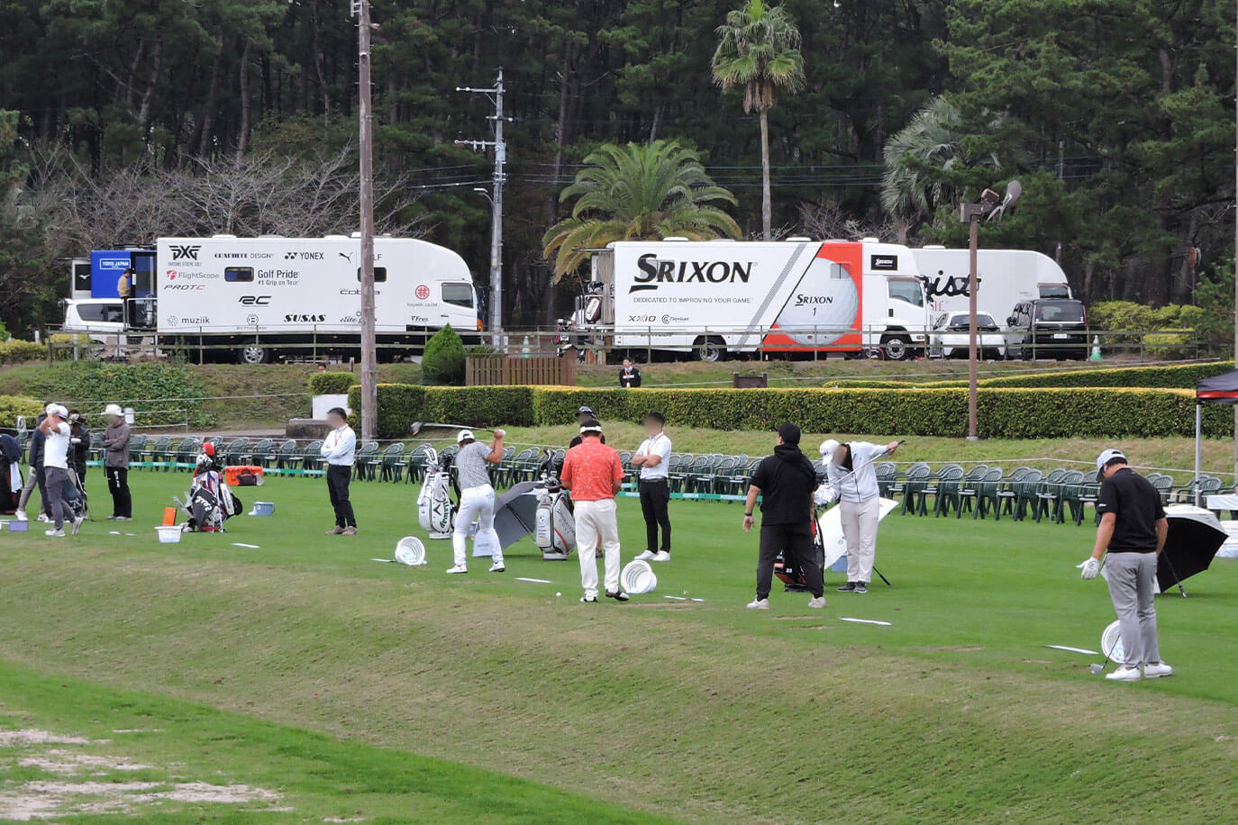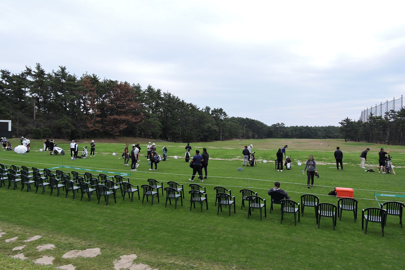 「ドライバーで打っても落ち際が見える」とプロたちからの評価も高い洋芝・350ヤードのドライビングレンジ。今年はいつになく出場選手たちのコース入りが早く、ドライビングレンジも17日(月)から賑わっていました。