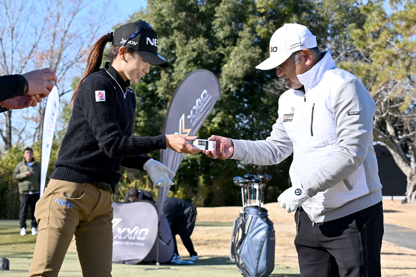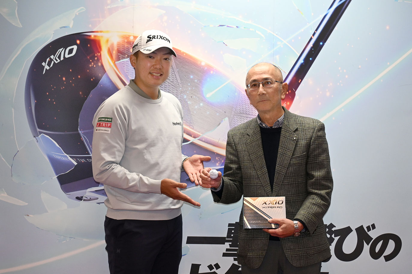 今回新たなアトラクションとして設けられたのが「ゼクシオ 14 一撃の飛び体感ホール」。このホールではスコアはカウントせず、プロとゲストのみなさんは、ティショットで、自身に合ったゼクシオ 14 シリーズの試打クラブを選び、新発売のボール『ゼクシオ ハイパー RD』を試打。その大きな飛びを体験していただきました。プロが放つ豪快な一打に、ゲストのみなさんからは大きな歓声と拍手が。また、ティショット後には、プロが同組のゲストのみなさんに『ゼクシオ ハイパー RD』(1スリーブ)をプレゼントしました。