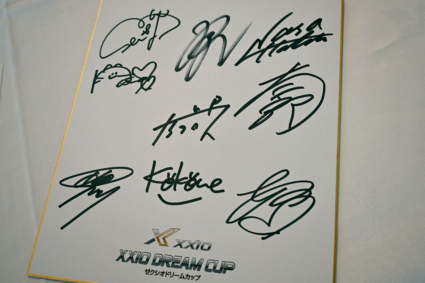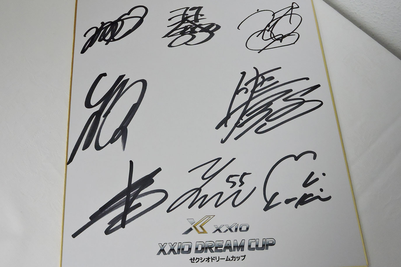 ゲストのみなさんには、参加賞としてゼクシオのキャップと参加したプロ全員のサイン入り色紙をプレゼント。