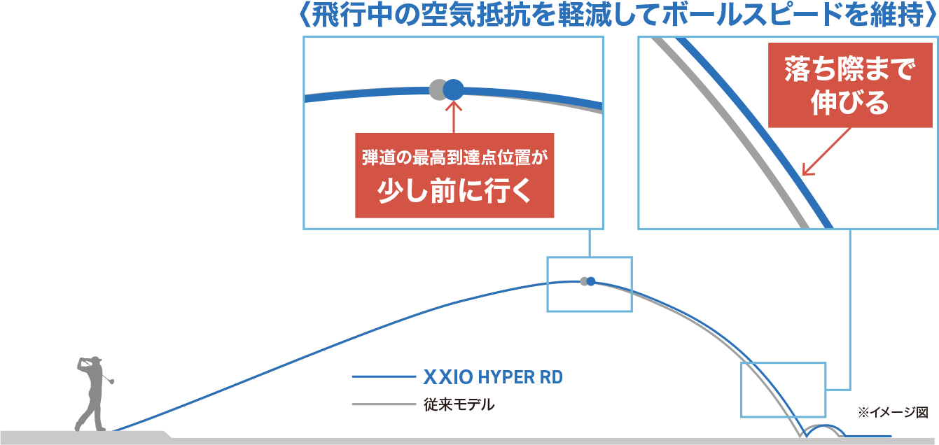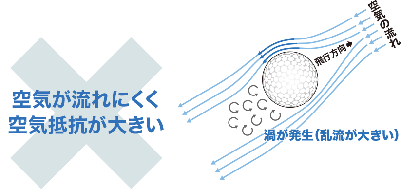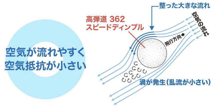 飛行中のボールにかかる空気抵抗を低減し、速いボールスピードを維持することで
