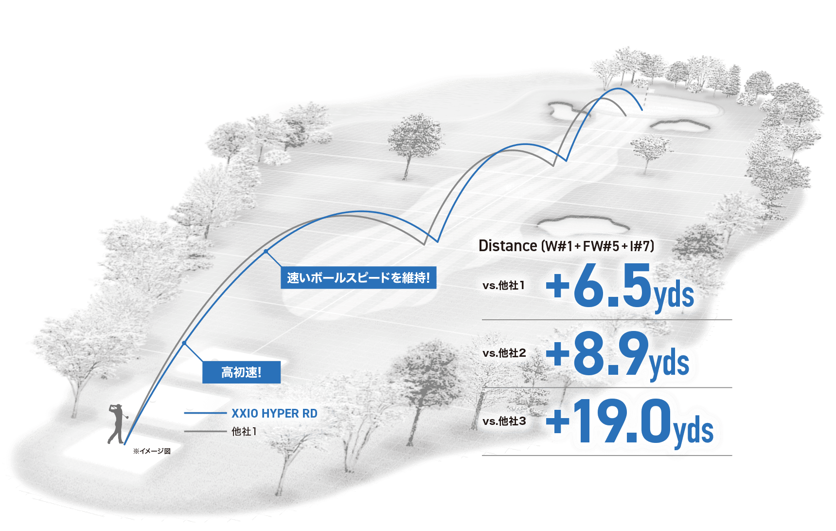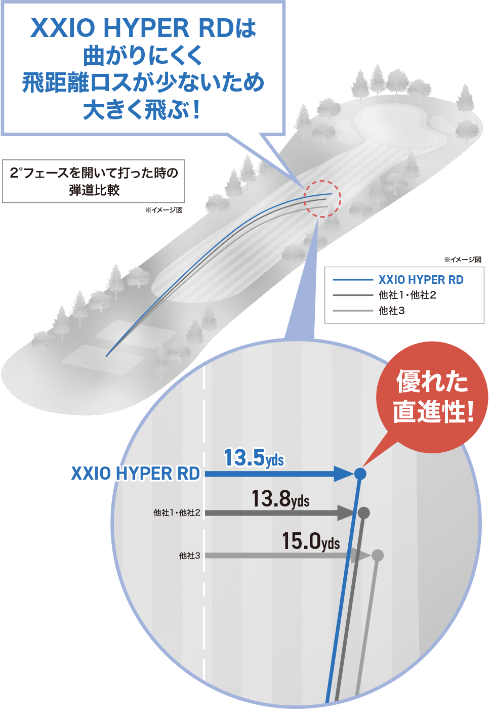 XXIO HYPER RDが打ち出し高く、スピンを抑えることで、さらに飛距離アップ!