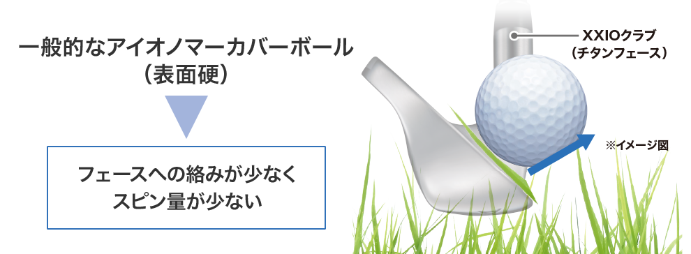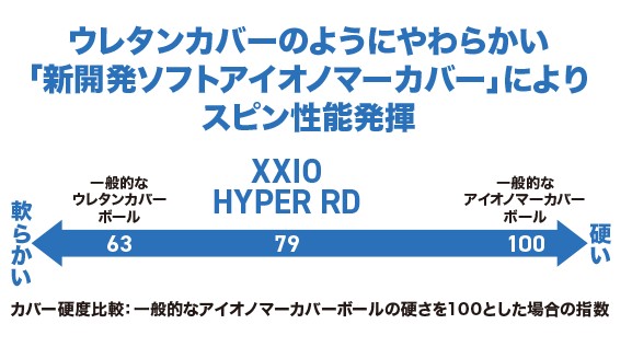 | カバー | 低スピンかつ反発を高めるため、 硬度アップ |