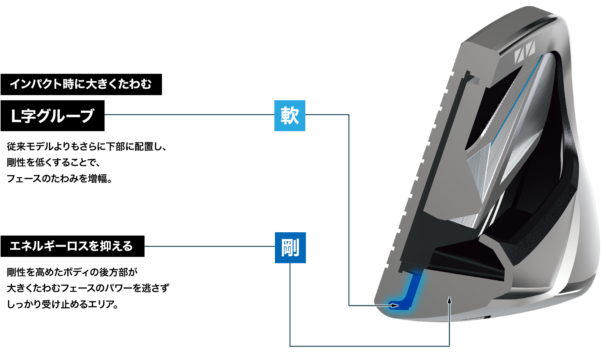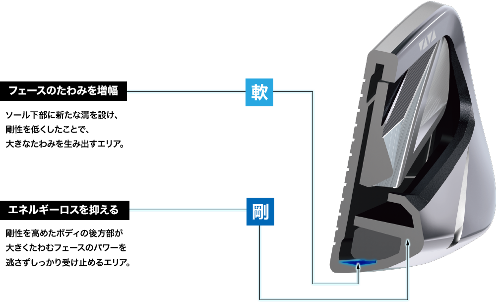 インパクト時に大きなたわみを生み出し、初速性能が向上。