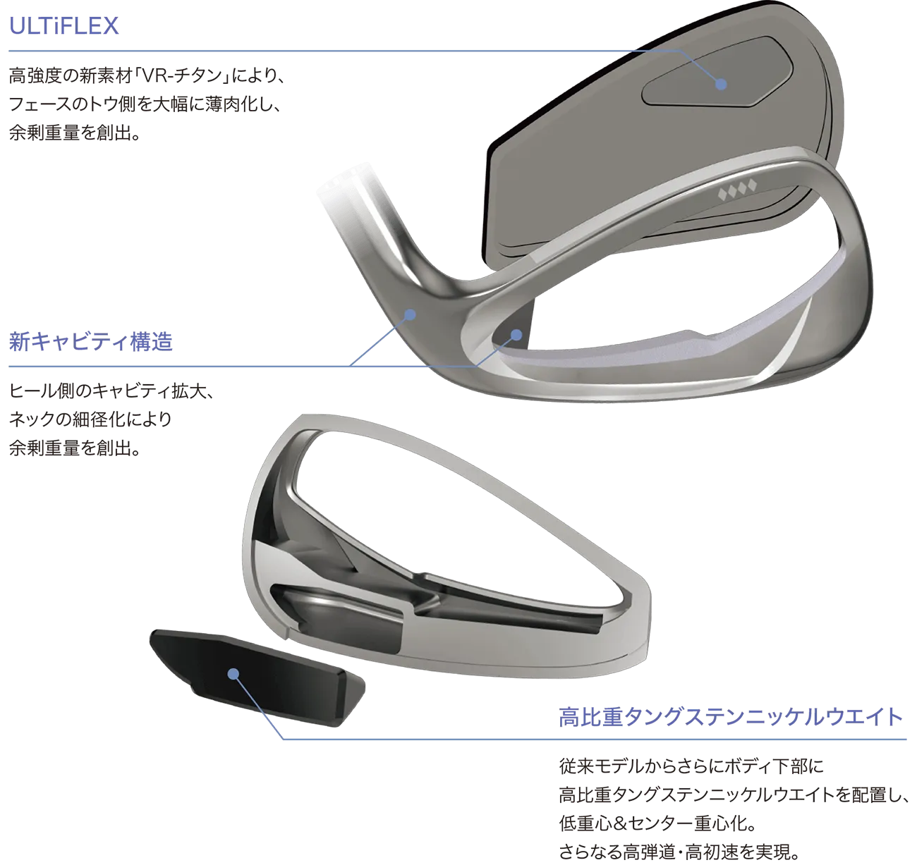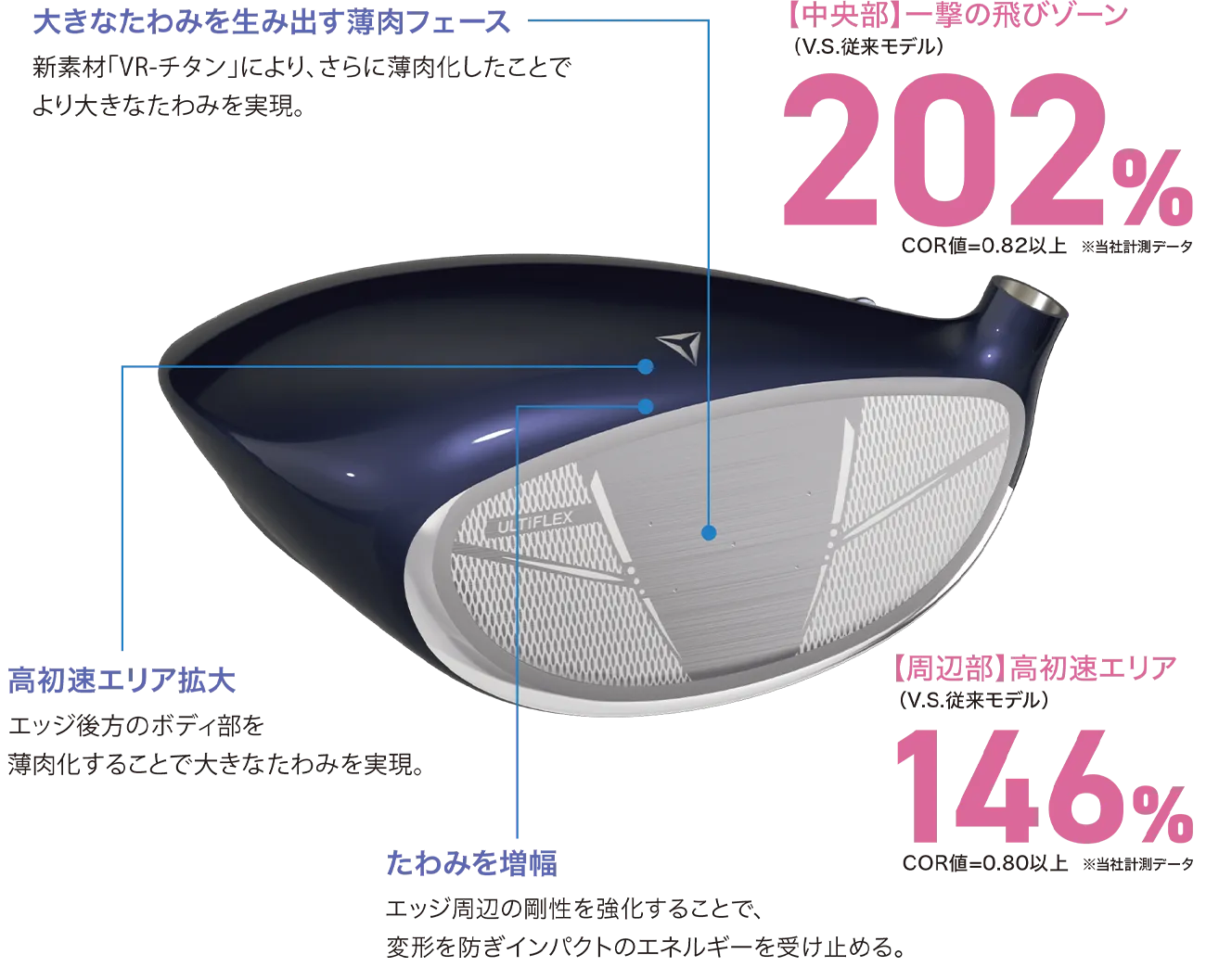 「VR-チタン」の特性を活かしたフェースの薄肉化や、