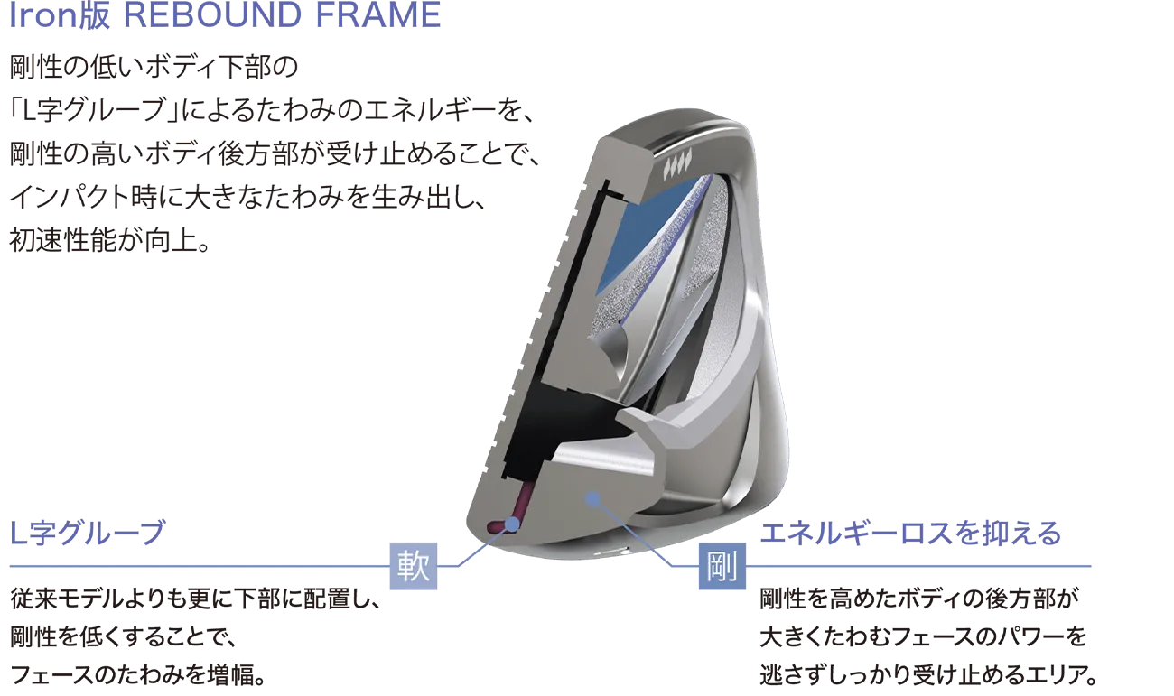 サウンドリブ設計により、どこに当たってもゼクシオならではの心地良い打球音を実現。