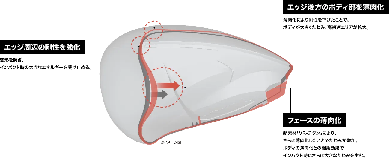 - ヘッド素材/フェース:VR-Titanium (Super-TIX®52AFS)