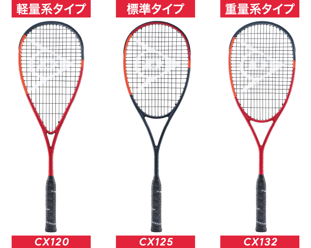 これからスカッシュを始めるのなら、軽く打ってもボールがよく飛び、多少芯をはずしてもミスになりにくいラケットが最適。扱いやすく重すぎず軽すぎず、ダンロップなら1本シャフトの「FX125」「FX125 PRO LITE」などをおすすめします。
