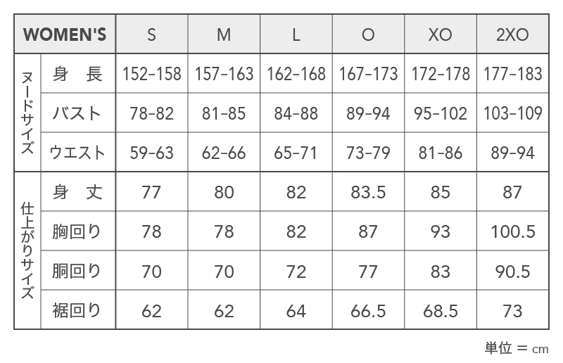 | サイズ | S、M、L、O、XO、2XO |