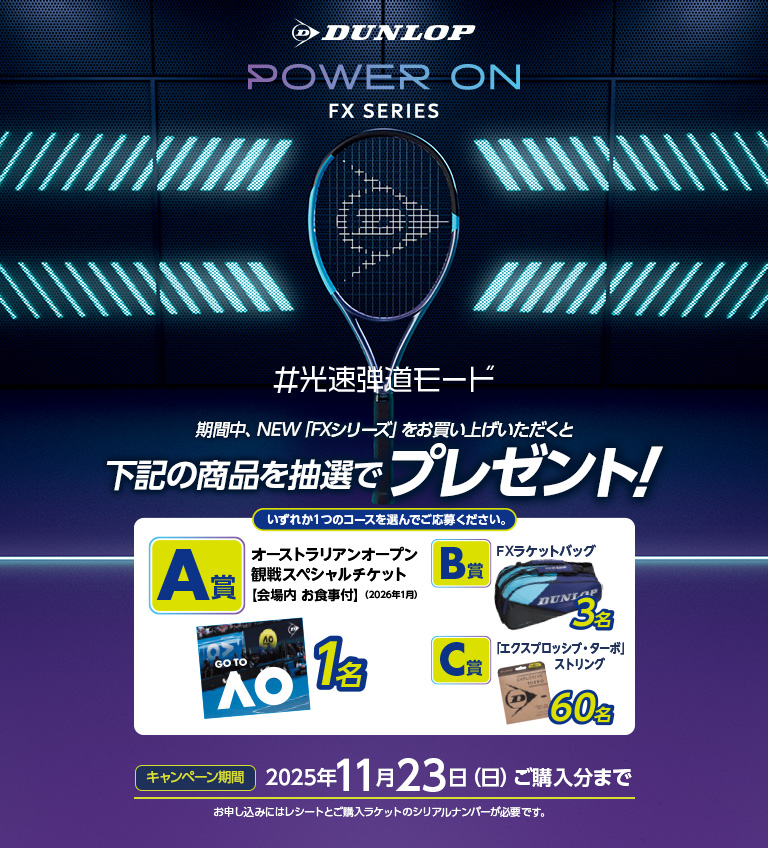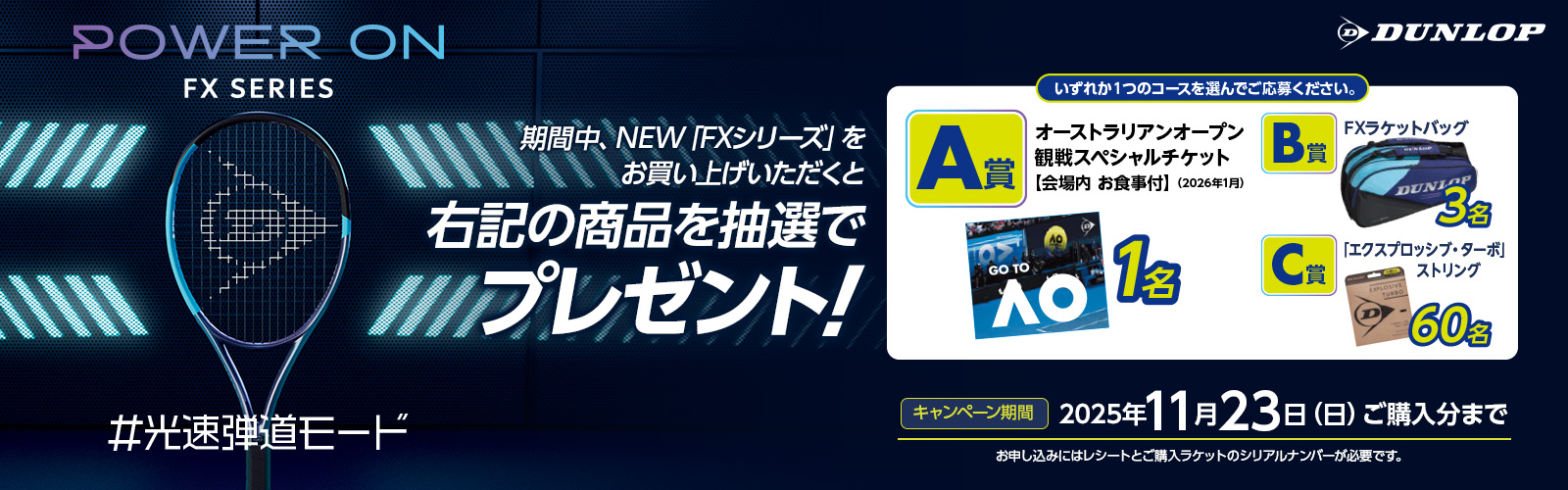 - 2025/10/20 飛びとパワーを追求したダンロップテニスラケットNEW「FX」シリーズ6機種を新発売 ~「全豪オープン」観戦チケットが当たる発売記念キャンペーンを実施~