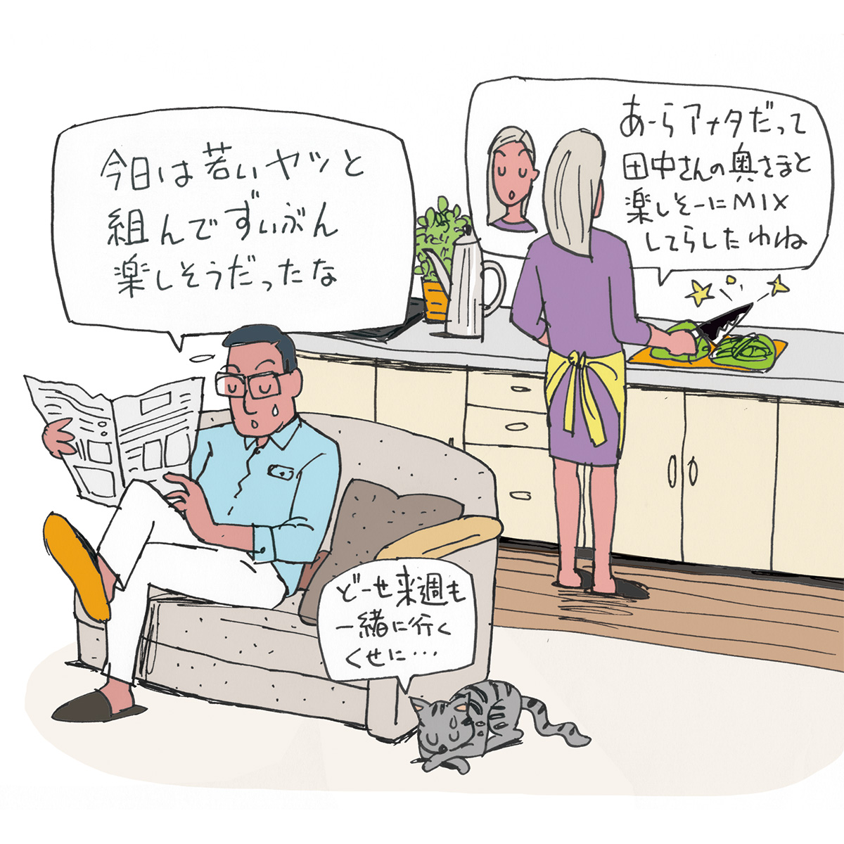 たま〜に「ダンナのほうが上手い」ご夫婦ダブルスを見かけると、こちらが安心しますね。オクサマの「ごめんなさぁ〜い」ですべて円満です……が、そんなの異例中の異例。夫婦揃ってクラブに入会した頃は、夢見たラブラブテニスだったのに、いまやクラブに足を踏み入れた瞬間に「別行動」。