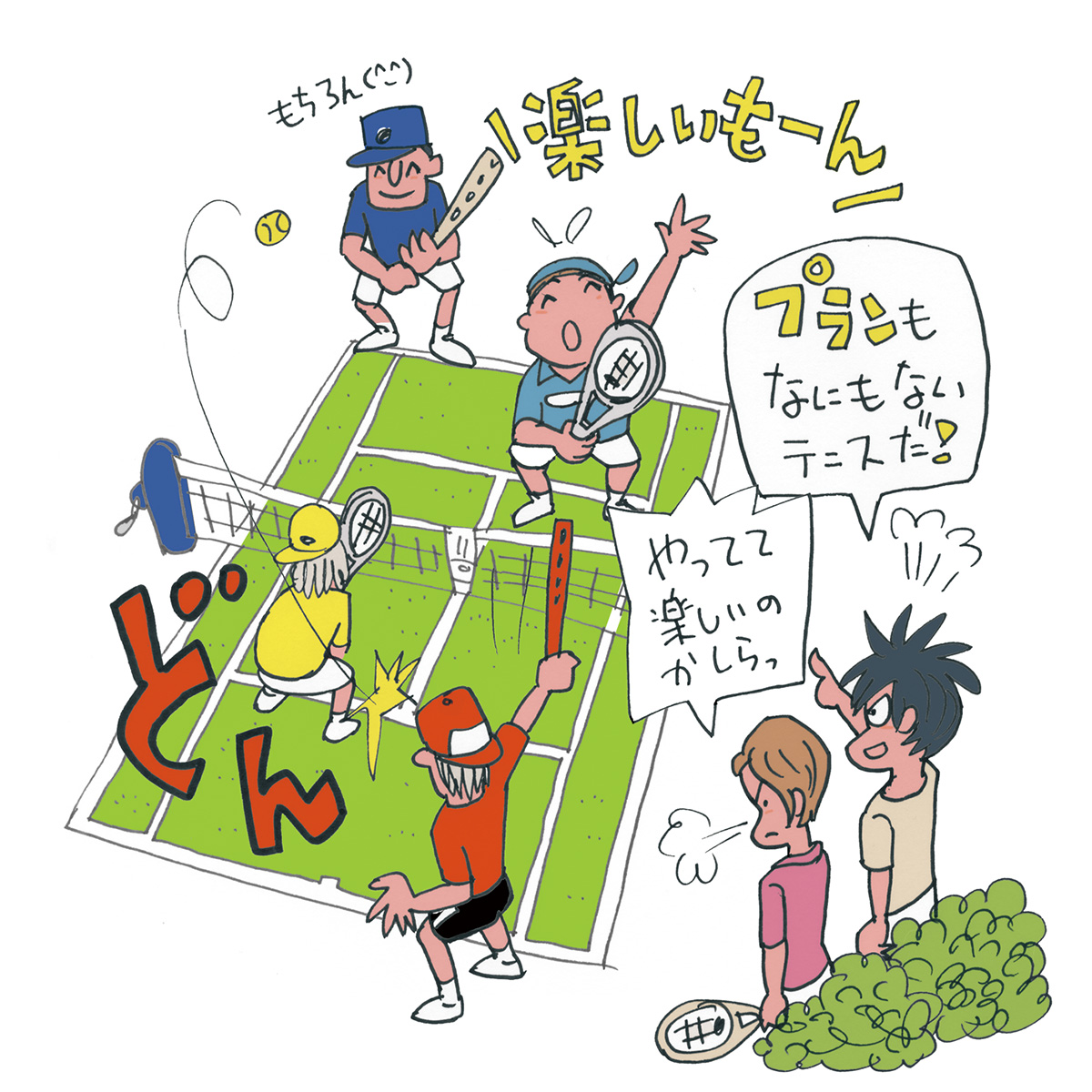 そうした不純な目的で通っていたテニススクールに、ミックスダブルスの同伴ペアがいて、いつも二人でパターン練習をしていたんですね。レッスンとレッスンの合間にコートへ飛び出し、もうね、活き活きとパターン練習に励むわけ。相手のロブが上がるたび「プランBだっ!」とかなんか叫んじゃったりして。