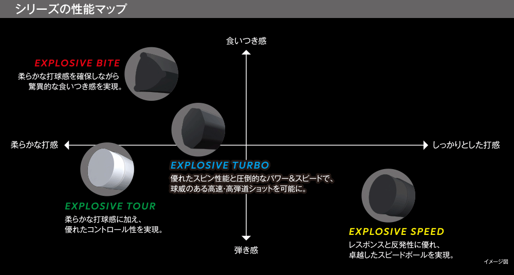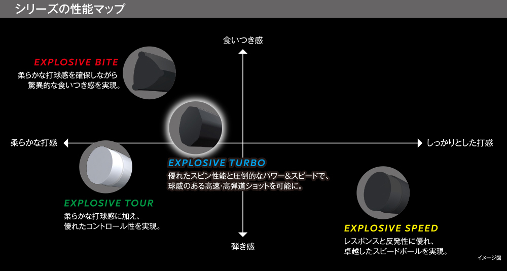 新たに「パワースピン系ポリ」を加えたポリエステル系4機種をラインナップ。