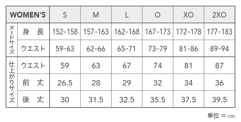 | サイズ | S、M、L、O、XO、2XO |