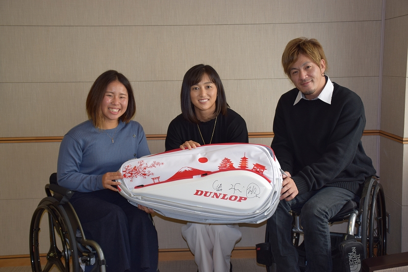 上地選手・菅野選手に対しては、「東京2020パラリンピック」での活躍を称え、花束の贈呈と、DUNLOPタイヤ1セットの目録をお渡ししました。