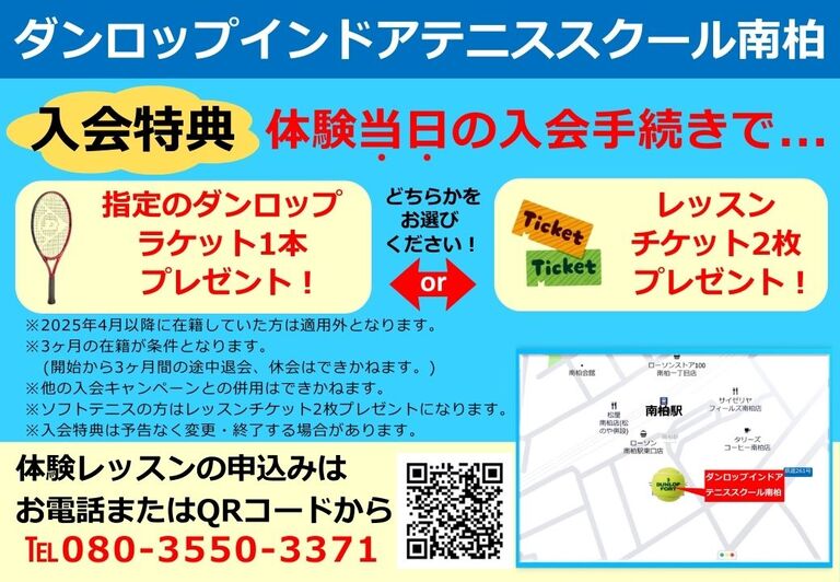 ■体験レッスン当日入会でラケットorレッスンチケットプレゼント!